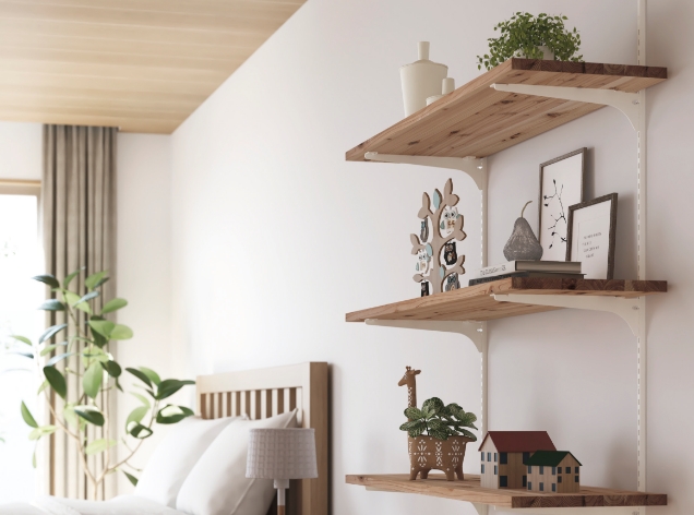 日本の代表的な天然木を採用した棚板なので、収納物を引き立ててくれるだけでなく、インテリアのクオリティアップにも貢献してくれます。キッチンをはじめリビングなどの居室にもお使いいただけます。