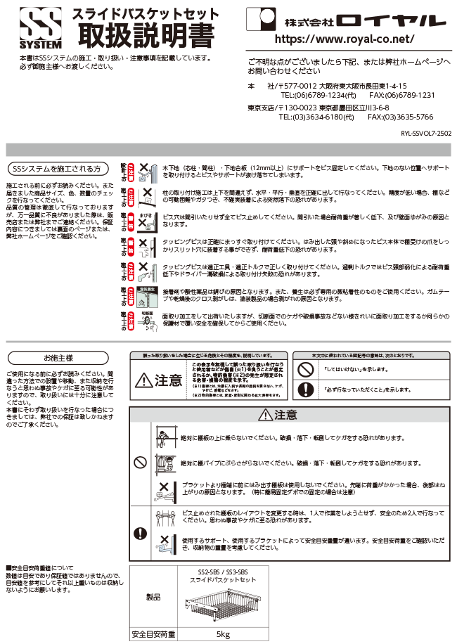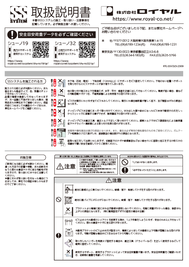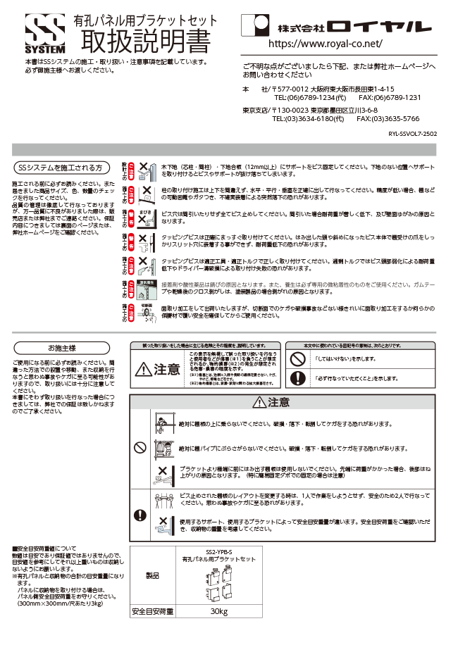 外観・仕様は改良の為、予告なく変更する事がありますのでご了承ください。本カタログの表示価格には、配送、設置調整費、また消費税は含まれておりません。本カタログに記載の数値は、検査機関及び当社で測定したものですが個体差があり必ずしもその数値を保障するものではございませんのでご了承ください。ご注文の際は必ず品番、数量、ご希望納期をご連絡ください。商品の色は印刷の具合で実物とは若干異なる場合があります。内装や金属加工などの経験がない専門業者以外の方独断での判断で施工・加工はしないでください。当社の商品は知的財産権所有の商品です。(国内外特許・実用新案・意匠登録など)本カタログの著作権は全て(株)ロイヤルに帰属いたします。イラストや写真、その他本カタログの内容を使用されたい場合は必ず事前に当社の了承を得てください。